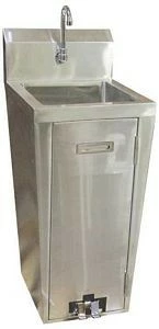 An excellent hand washing station for commercial kitchens, the Omcan (FMA) 23515 Stainless Steel Pedestal Sink is designed with a foot pedal control to ensure hands free operation. This foot valve easily activates water flow while reducing the risk of cross contamination.
